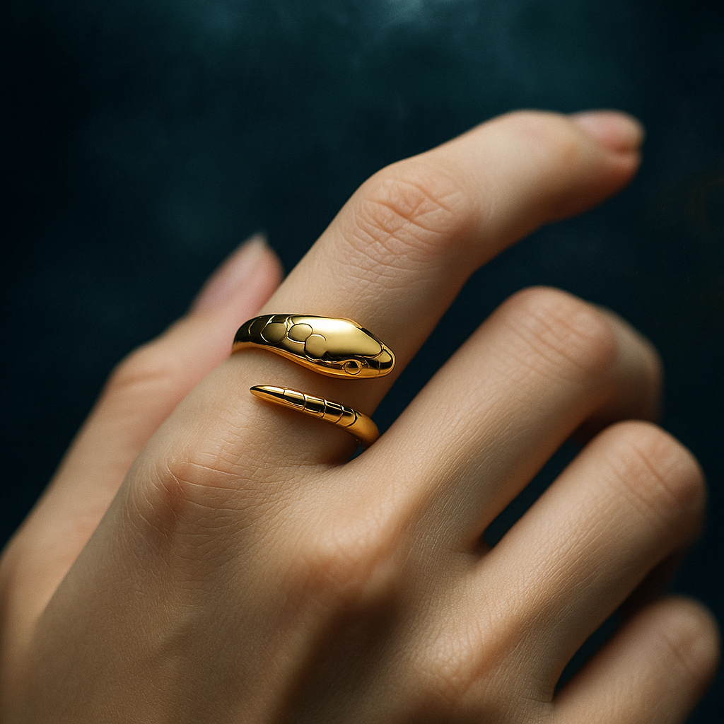 Our elegant snake ring is the perfect accessory for those who love luxury and style. Crafted from high-quality sterling silver and gold-plated, this ring shines with a sophisticated golden finish.