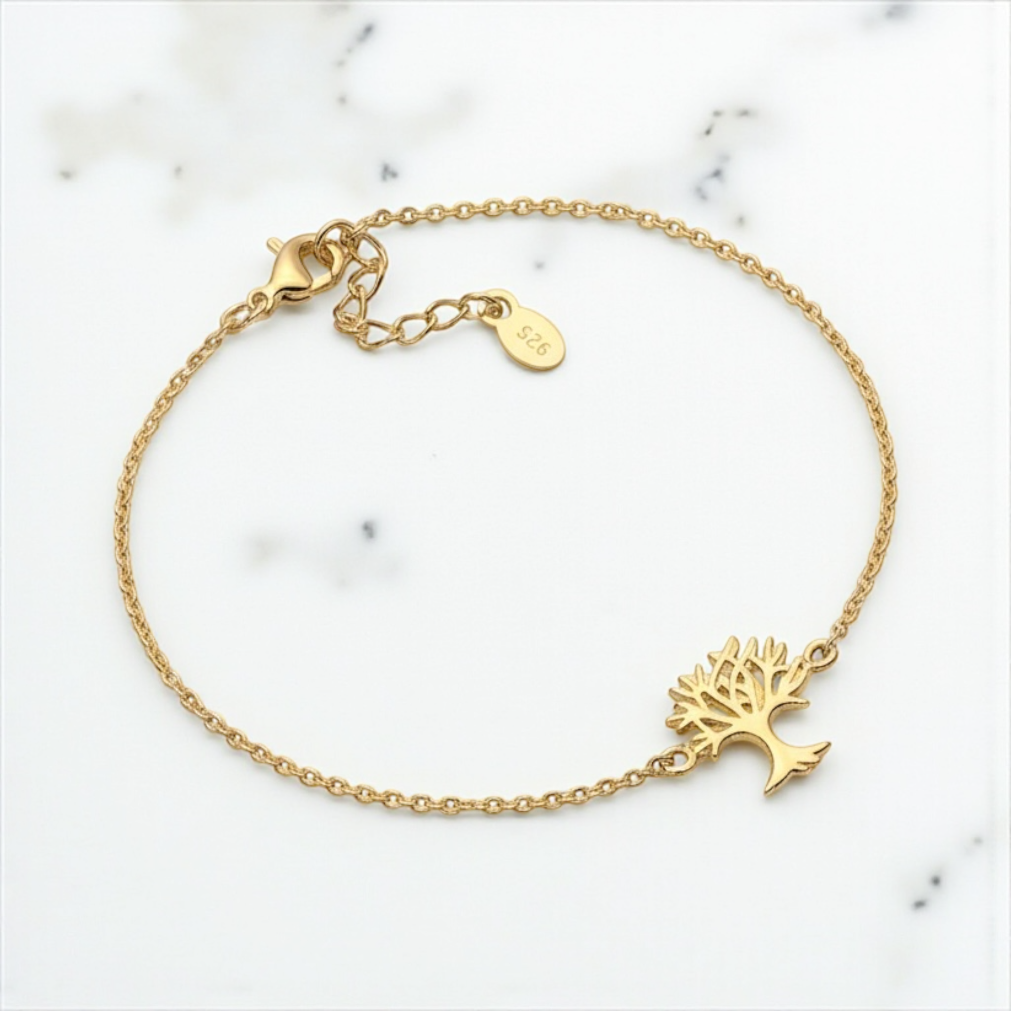 Tree of Life Bracelet in 925 Sterling Silver – 18K Gold Plated, 16.5 cm Length - ARM925-36