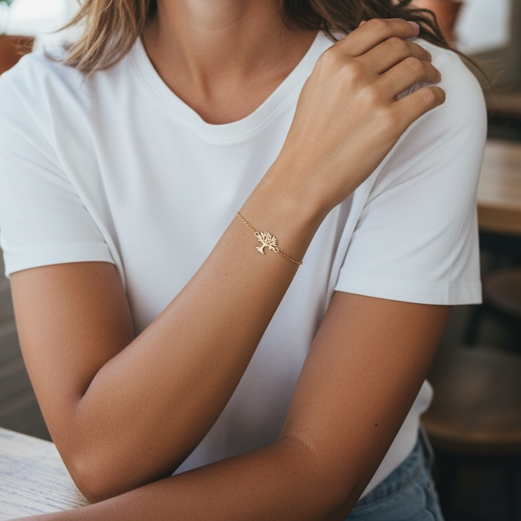 Our Tree of Life bracelet, crafted from 925 sterling silver and finished with 18K gold plating, combines elegance with a touch of nature and is a true eye-catcher. Measuring 16.5 cm (6.5 inches) in length, it's the perfect accessory for any occasion and any jewelry collection.