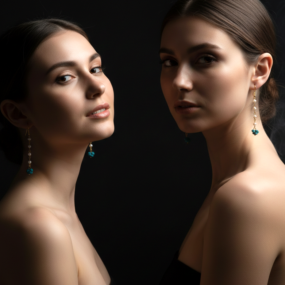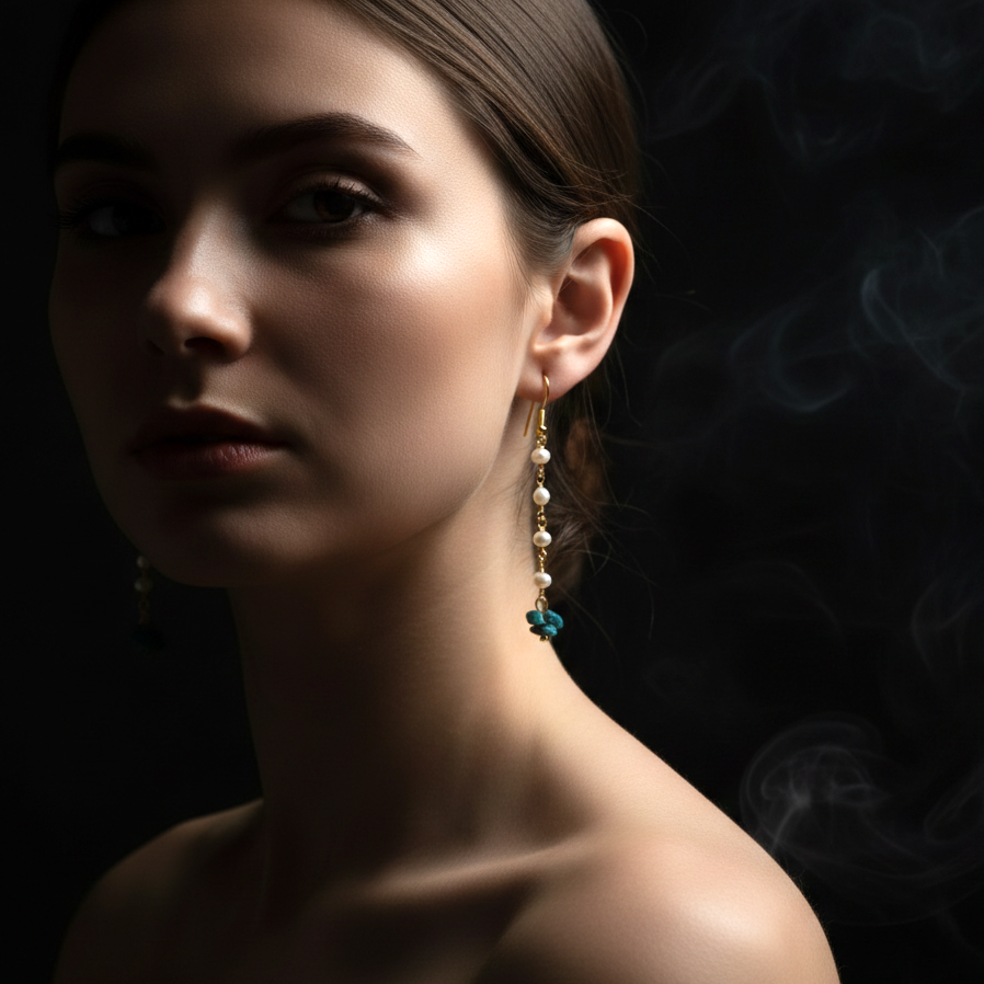 Gefertigt aus echten, hochwertigen Süßwasserperlen und edlen Türkis-Elementen, verleihen diese Schmuckstücke jedem Outfit eine exklusive Note. Die Ohrhaken bestehen aus 18K vergoldetem 925 Sterling Silber und sind damit nicht nur robust, sondern auch hypoallergen — ideal für empfindliche Ohren und Allergiker.