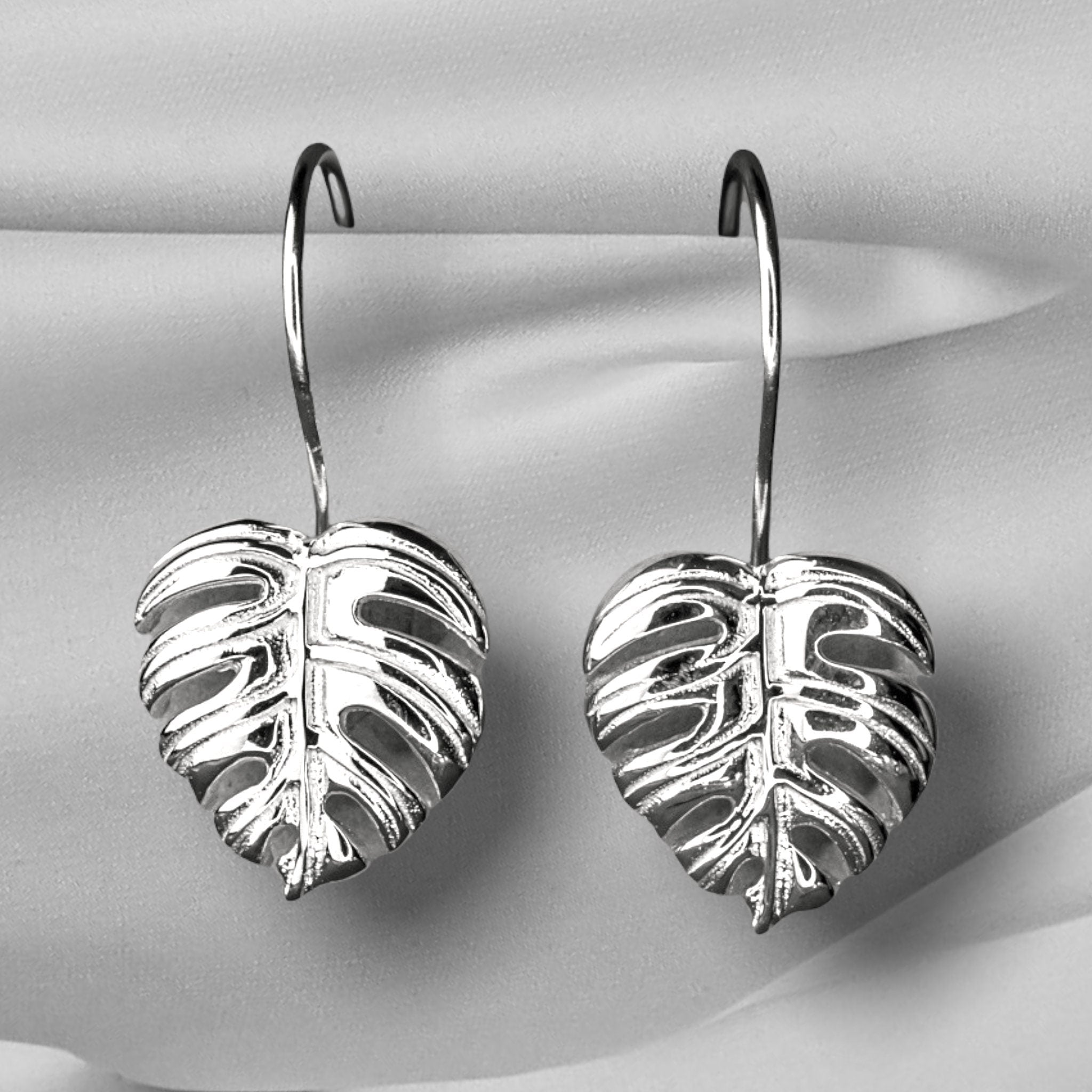 Monstera Leaf Earrings - 925 Sterling Silver Exotic Leaves Earrings - Ear925-115