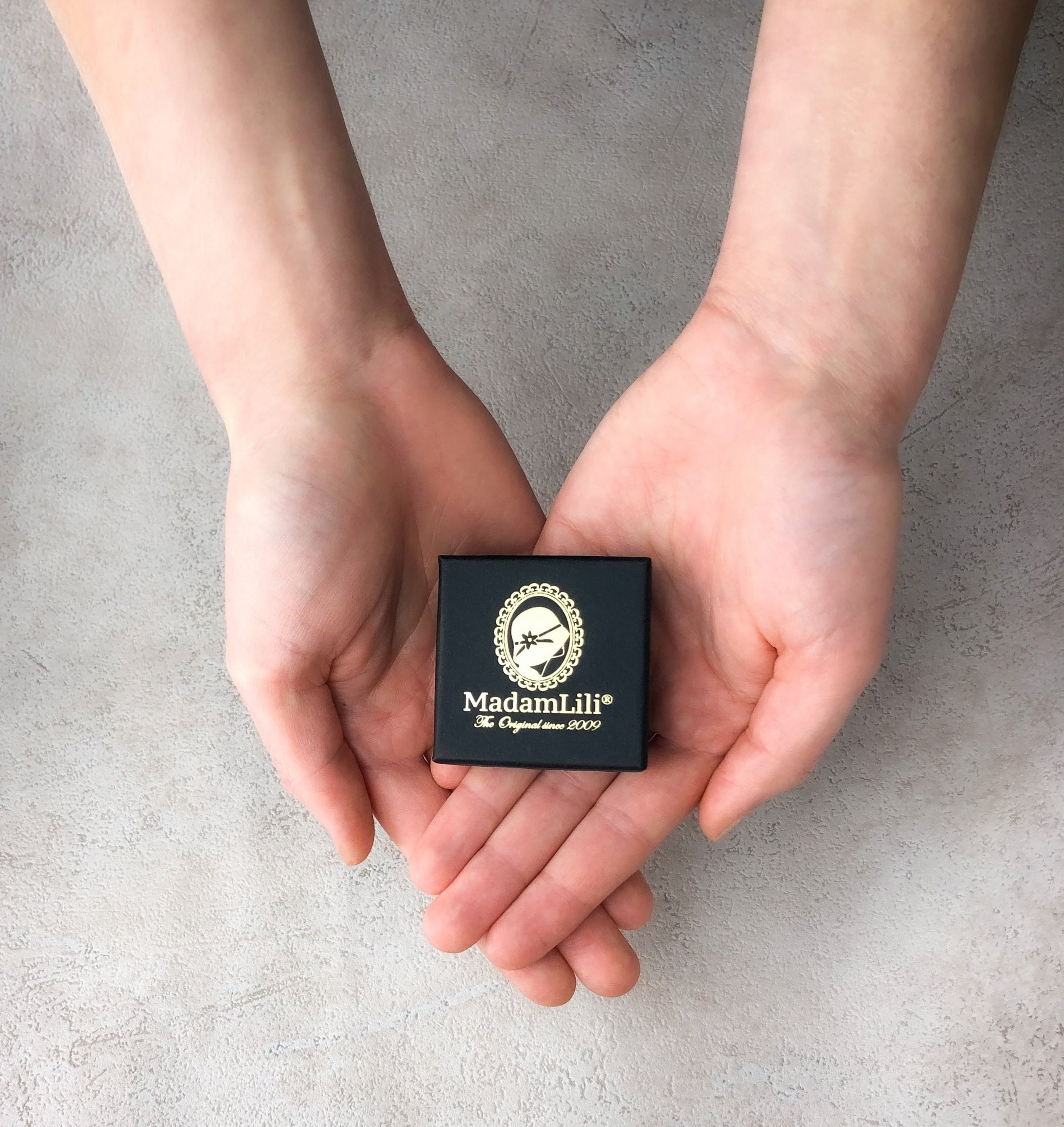 * All our pieces of jewelery come lovingly in our jewelry boxes or organza bag as a gift packed to you. Ideal for releasing!
